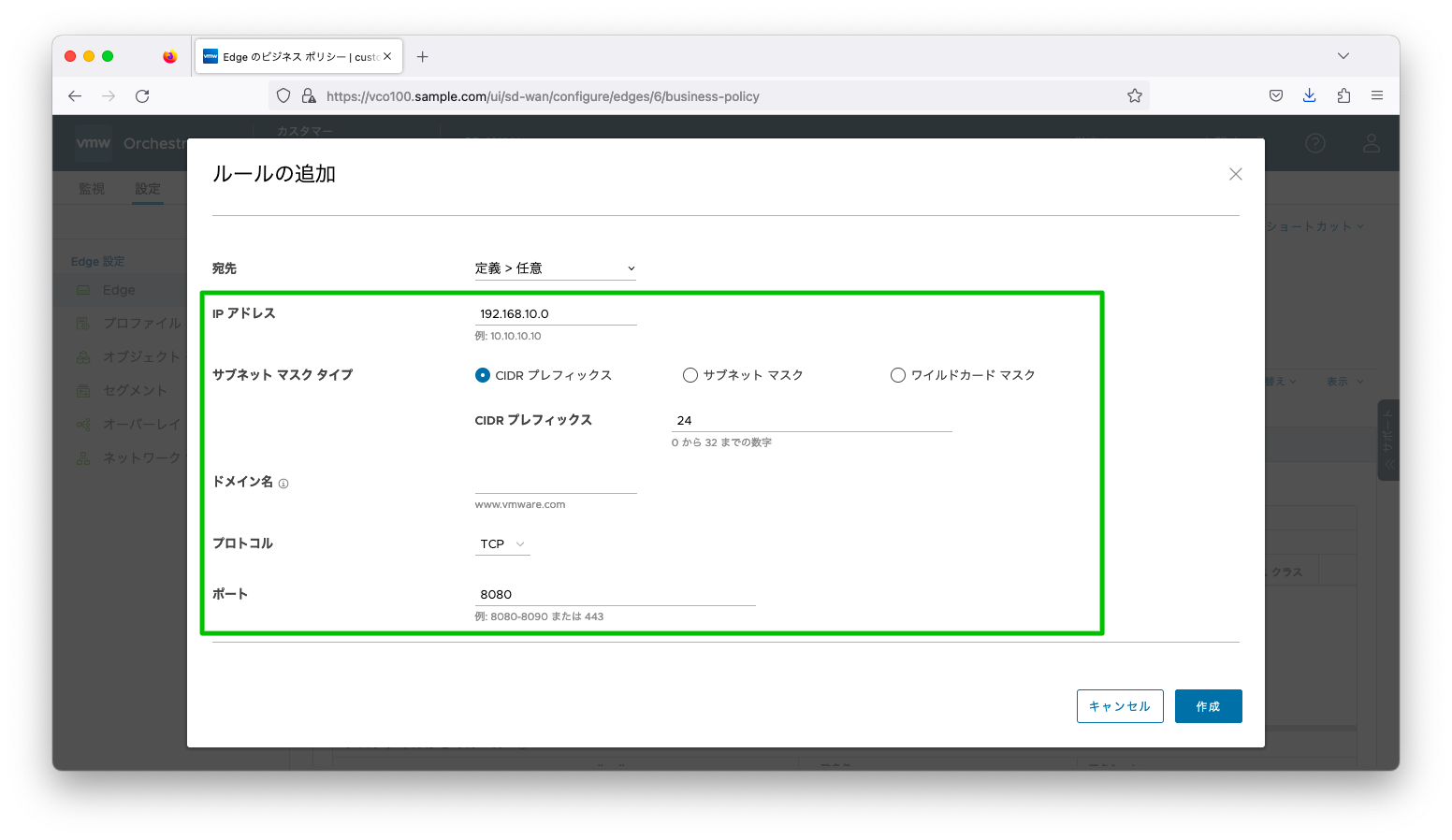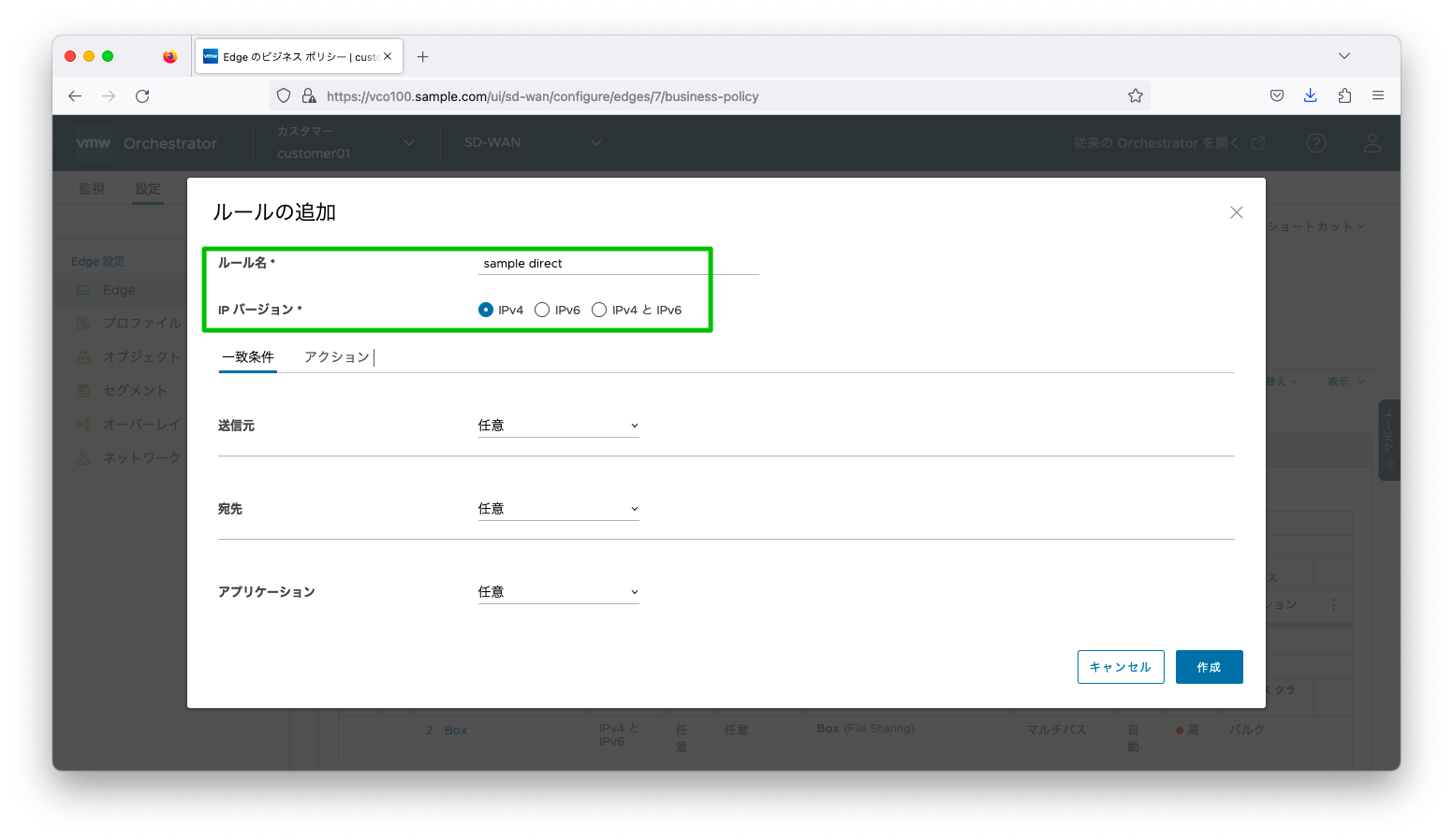 ただし、「ドメイン名(FQDN)」を使用する場合はファーストパケット問題に十分注意ください。ファーストパケット問題とはVMware SD-WANに限らず一般的なSD-WAN製品が抱える考慮事項です。ファーストパケット問題の考察記事は6月公開予定です。